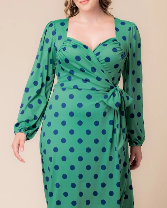 The Socialite Sweetheart Wrap Dress is one of those throw-on-and-go pieces that somehow feels like you planned your outfit days in advance. With its retro neckline, adjustable wrap fit, and vibrant dotted print, it works just as well for a garden party as it does for date night. Prefer something more understated? It also comes in black and navy. Keep this plus size outfit simple with nude heels, a neutral clutch, and delicate jewelry.