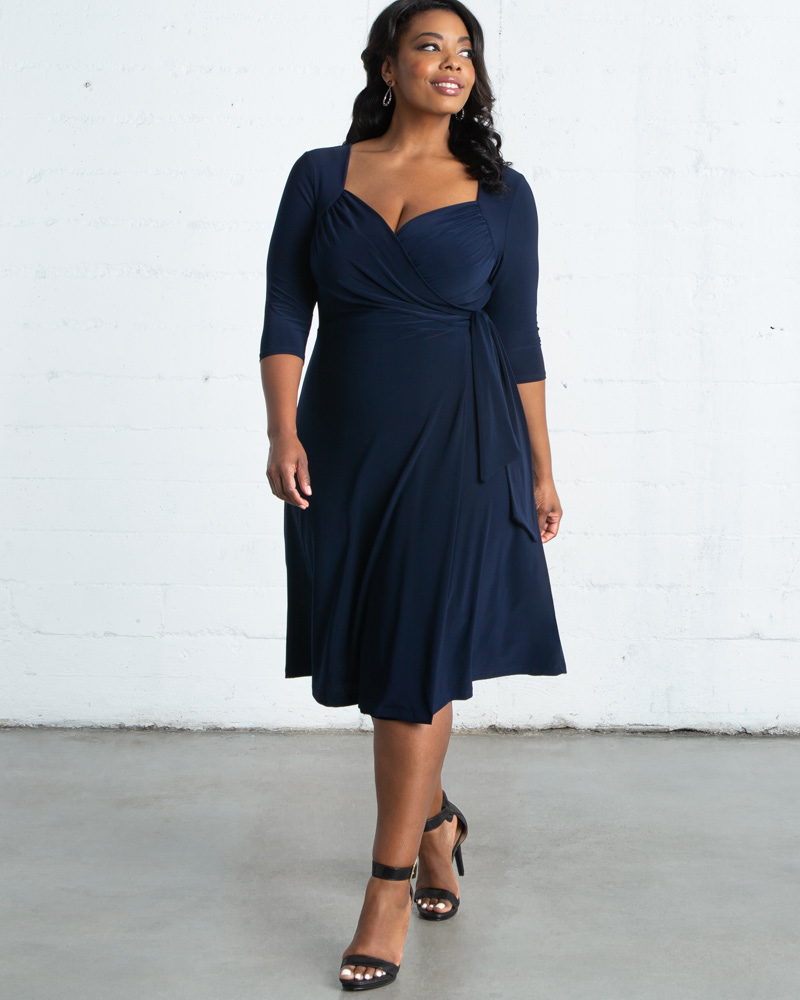 Spring is the season for pops of color, both solid and printed. Our Sweetheart Knit Wrap Dress is versatile enough for any occasion: work, dates, and semi-formal events. Enjoy this style in solid colors of Navy and Black Noir. Additionally, solid wrap dresses and jumpsuits make great closet staples for a variety of events and soirees. And don’t forget fun, bold prints! Our newest dress, the Sophisticate, features a unique Navy Geo Print, with a contrasting belt and collar in solid navy.
